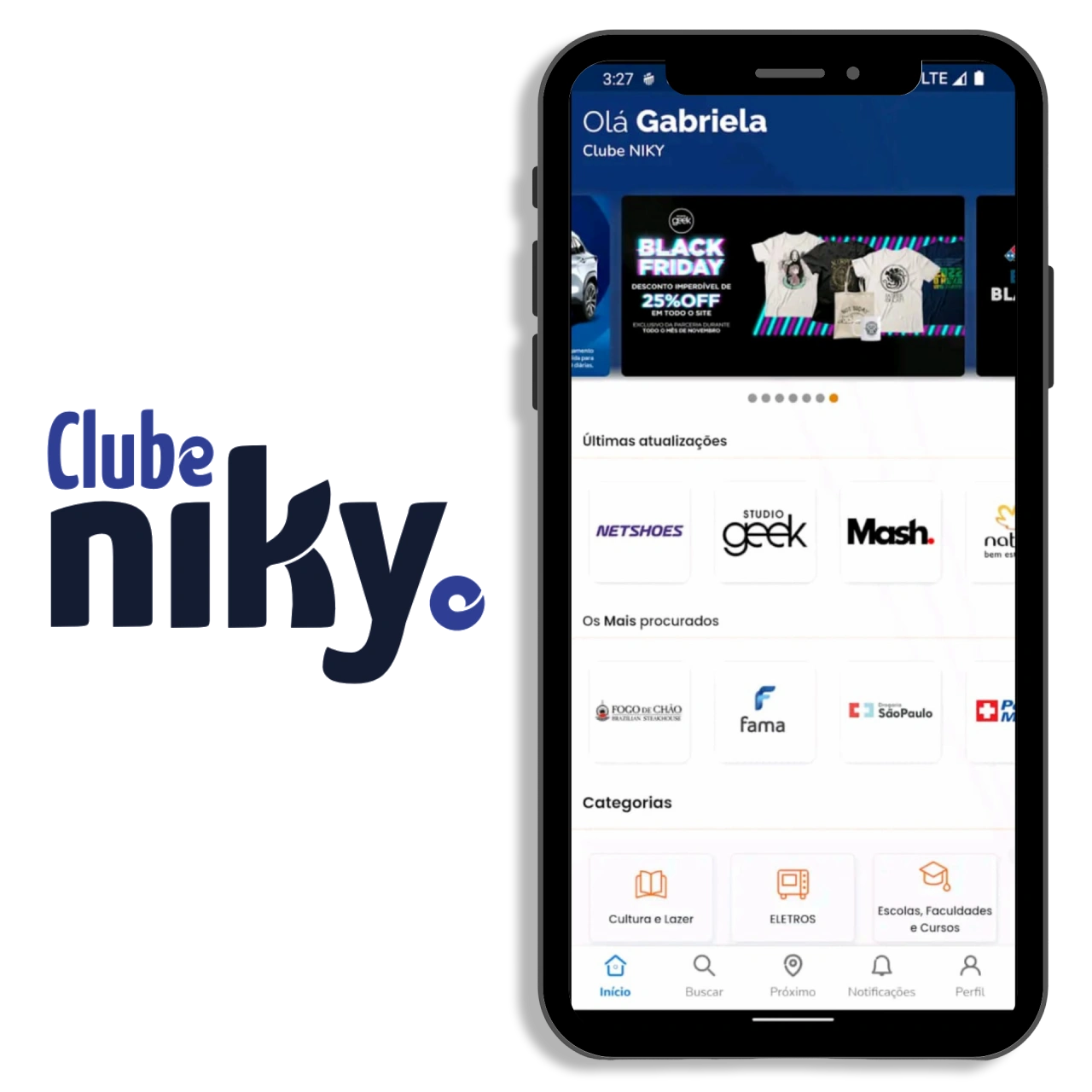 Acesso ao Clube Niky com descontos em mais de 500 lojas.